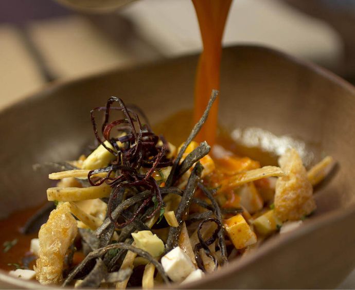 - Mexican cuisine fuses locally available staples like corn, tomatoes, chili peppers, squashes, avocados, and seafood with ingredients brought by the Conquistadors: herbs and spices as well as dairy products and meats like pork and beef. Corn tortillas are served alongside most meals. Mole poblano, a savory sauce of peppers and chocolate, is the unofficial national dish—it’s served atop everything from turkey at weddings to seafood at Christmas.