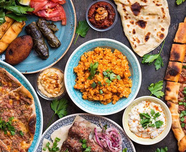- On the tour extension in Turkey, breakfast typically consists of sourdough bread with sheep’s cheese and olives, as well as jam or honey. A midday meal or dinner often starts with a meze: a plate of varied appetizers like cheesy pastry rolls, pickled vegetables, and potato fritters. And while tea is the national drink, be sure to try Turkish coffee. This strong brew is prepared with ultra-fine coffee grounds and spices like cardamom, resulting in a rich, aromatic drink. (Sip slowly, though: It’s served unfiltered!)