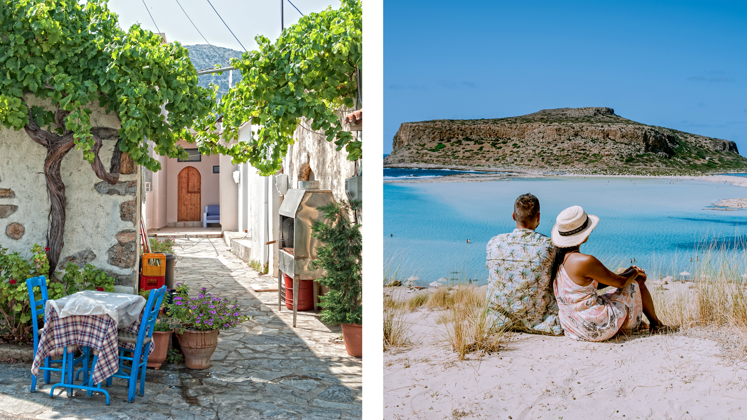- Balos Beach: The free day on Crete on our The Greek Islands: Mykonos, Santorini & Crete tour is the best time to visit this magical (though hard-to-reach) beach. You can take a ferry or a 4x4 rolling over a very rugged dirt road. But you’ll be treated to a pink-and-white sand beach, a lagoon with a mosaic of blue-and-green water, and—if you’re game to take another ferry ride—a Venetian castle on Gramvousa islet.