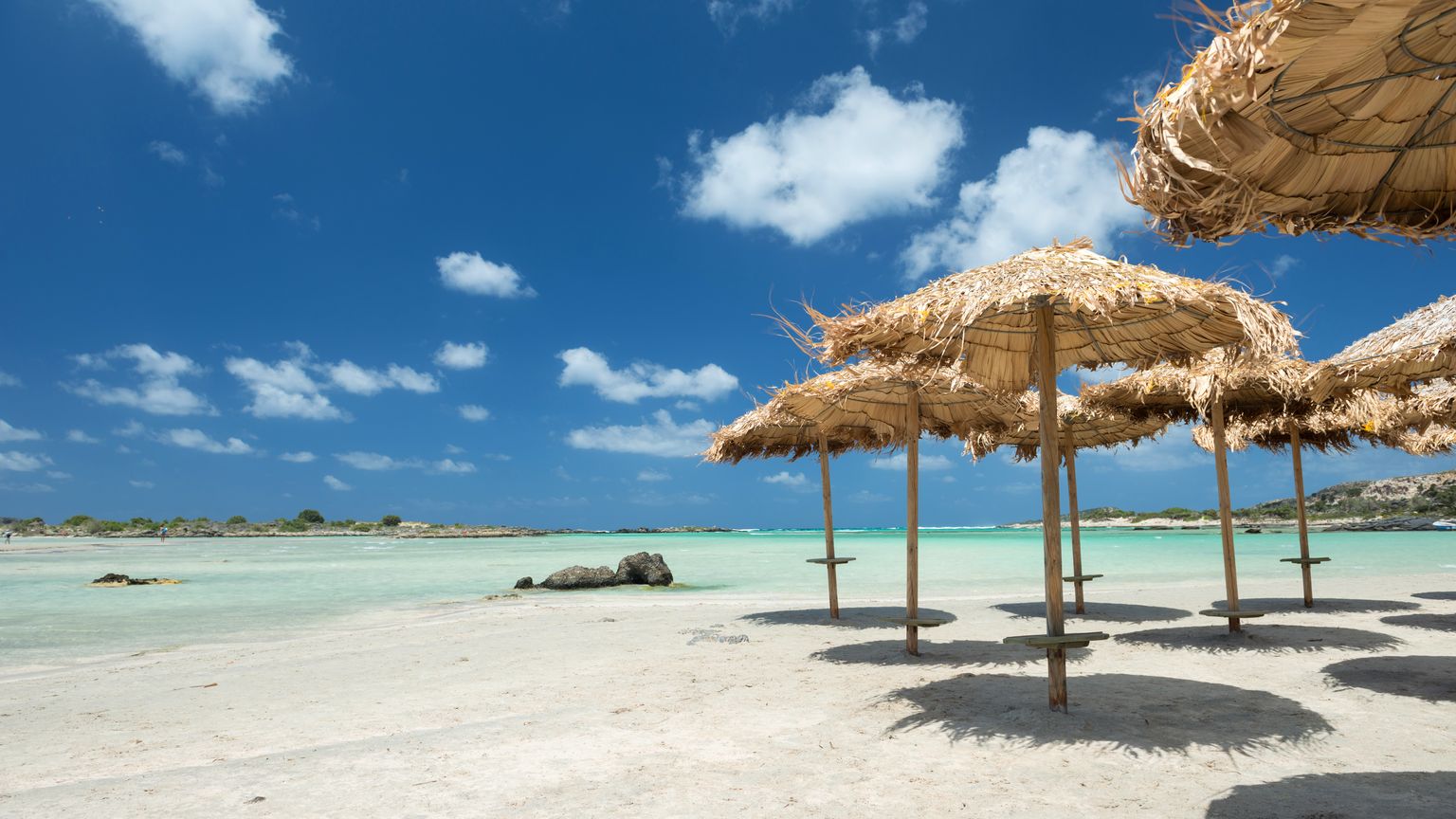 - Elafonissi Beach: More easily accessible than Balos, Elafonissi can be reached via car or bus. And unlike Balos, Elafonissi also has some beach amenities, like sunbeds and snack bars. But it’s no less stunning—this beach is made up of crushed seashells, giving it a glimmering, pinkish tint. Since it’s located in a nature reserve, it’s home to a loggerhead sea turtle habitat, too.
