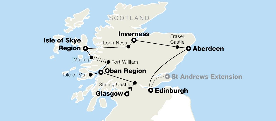 Scotland astounds, and this Small Group Tour amplifies its allure. You’ll hear the echoes of craftspeople’s hammers in Glasgow’s old mercantile zones; the whir of fisherfolk’s lines on Oban’s quays; and the weighty silence of the Isles of Mull and Skye. Edinburgh’s magnetic draw strengthens to a pull, and the Highlands’ story-filled lochs eagerly await additions of your own. Book this tour to experience it all—and see what St Andrews has in store on the optional extension. (Hint: There’s golf history, academic heritage, and photo ops galore.)
